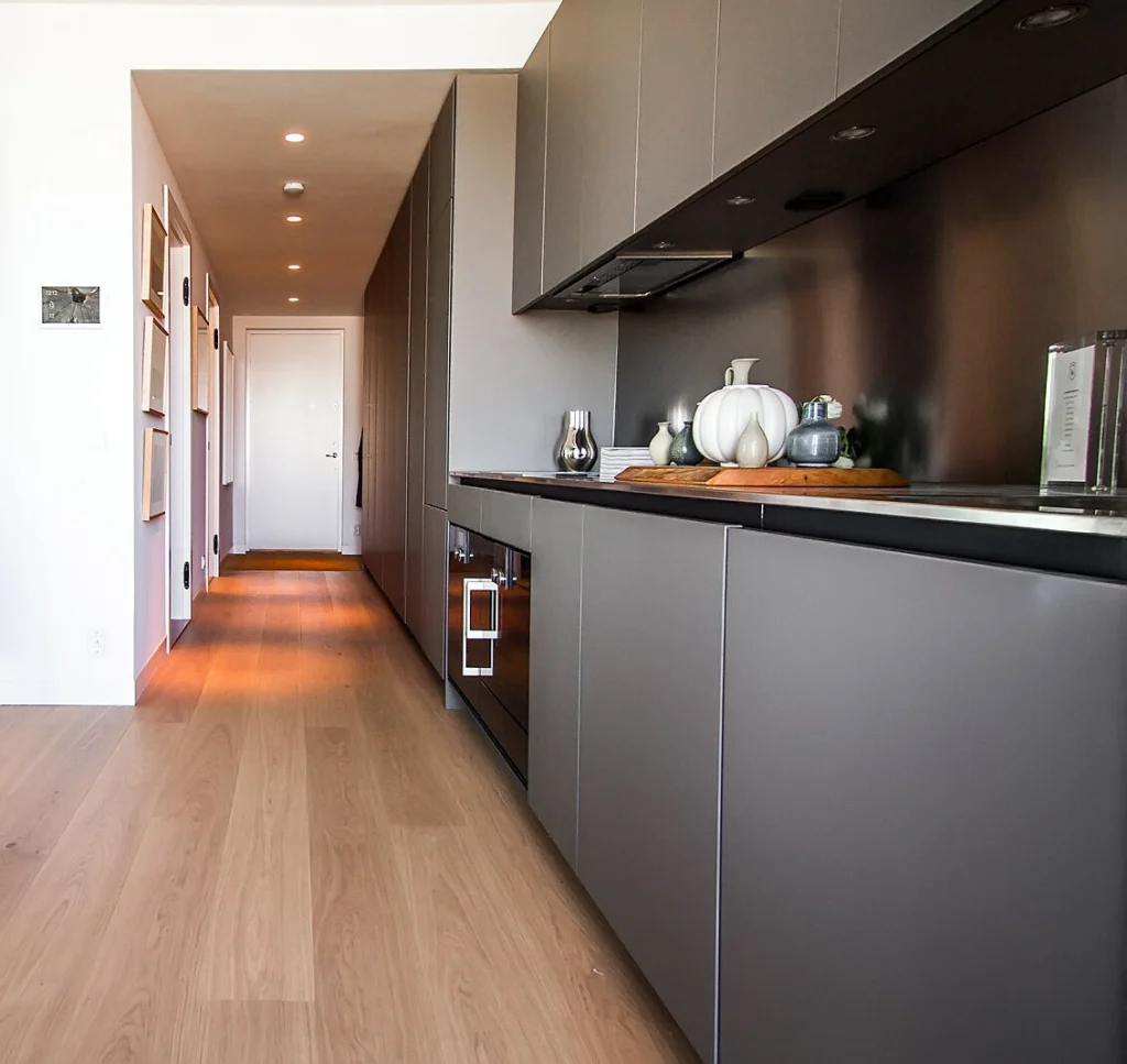 Även om vi normalt inte tillverkar skåpinredning för enklare bostadsstandard, har vi vid projekt med högre krav på finish och design varit ett självklart val – inte minst när det krävs exklusiv kvalitet. Ett exempel är vårt specialtillverkade kök i vad som kallats Sveriges dyraste lägenhet.